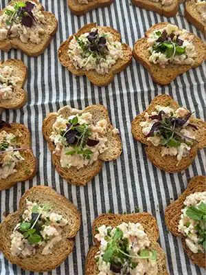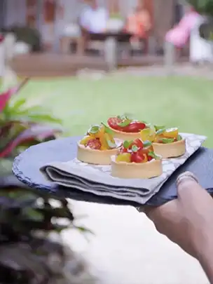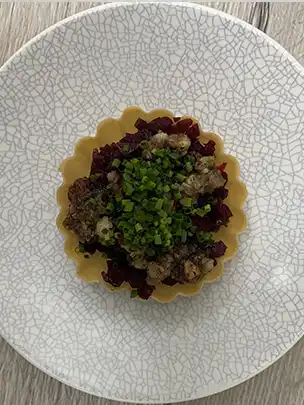 - Slow roasted beetroot, mint, and marinated feta tartlets